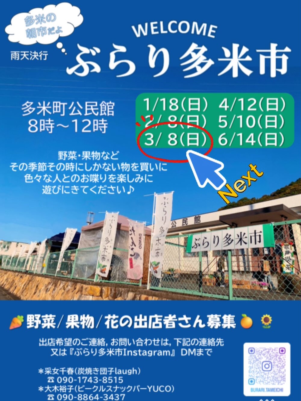 午前8時~12時、多米公民館でぶらり多米市を行います。