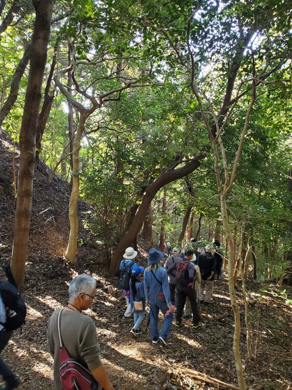 ウォークでは、赤岩山緑地内の赤岩の名前の元となった巨岩、役行者像、愛宕神社、赤岩城址、近藤寿市郎像、赤岩山展望台などを、ガイド付きで約1時間半かけて歩きます。ヤマザクラやモミジも混じる豊かな森林を満喫しつつ、戦国時代や江戸時代にも思いを馳せます。そして、豊橋発展の基礎を作った近藤翁の功績を確認しながら、展望台では豊橋の今を目の当たりにします。この地域の豊かな自然や歴史を訪ねます。
