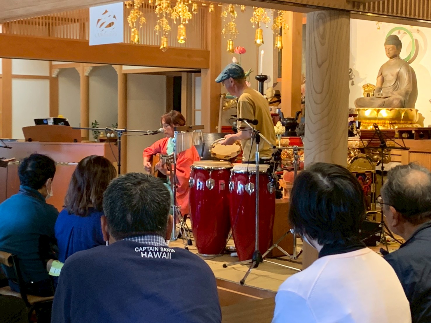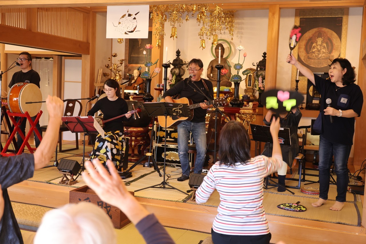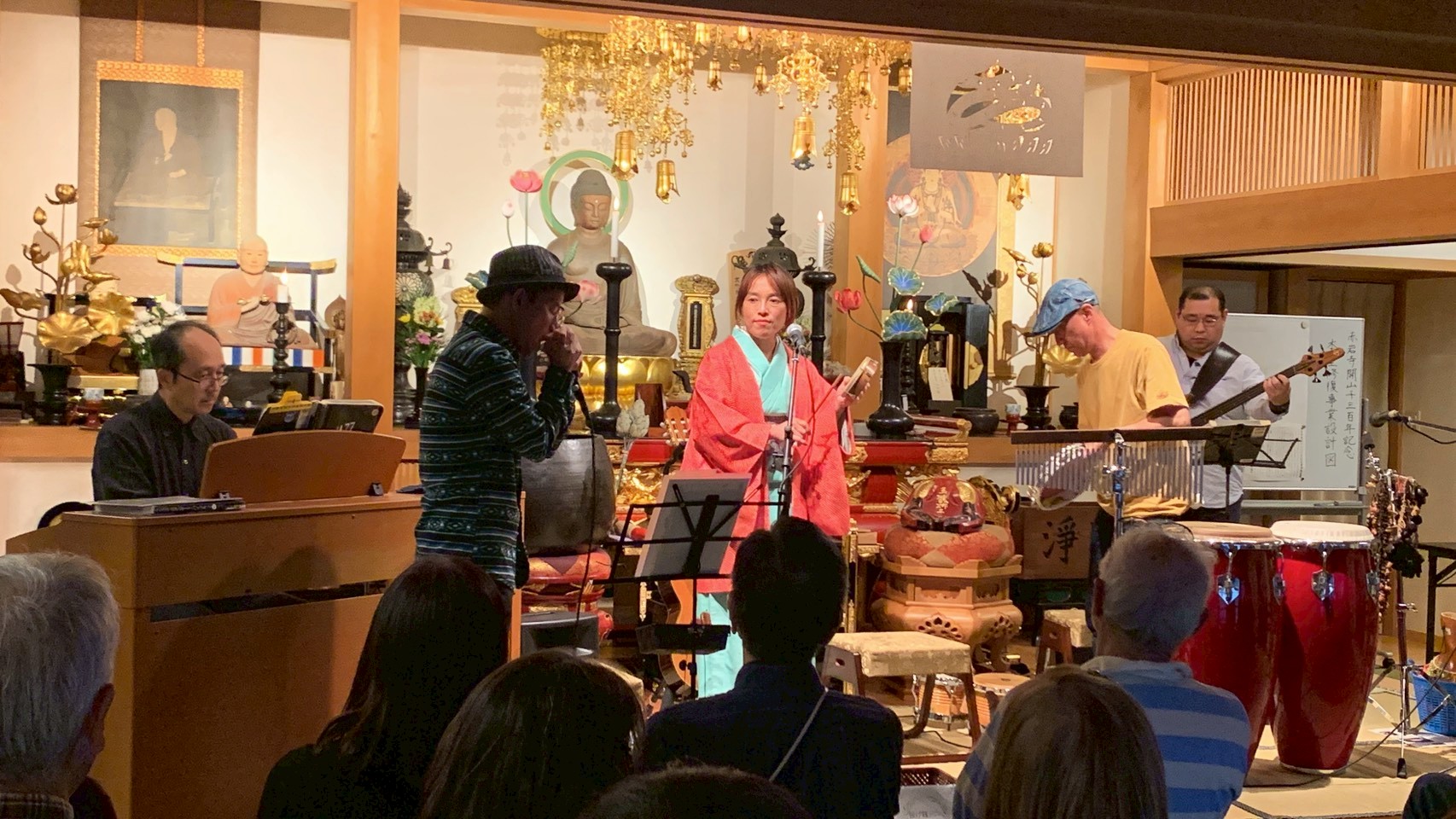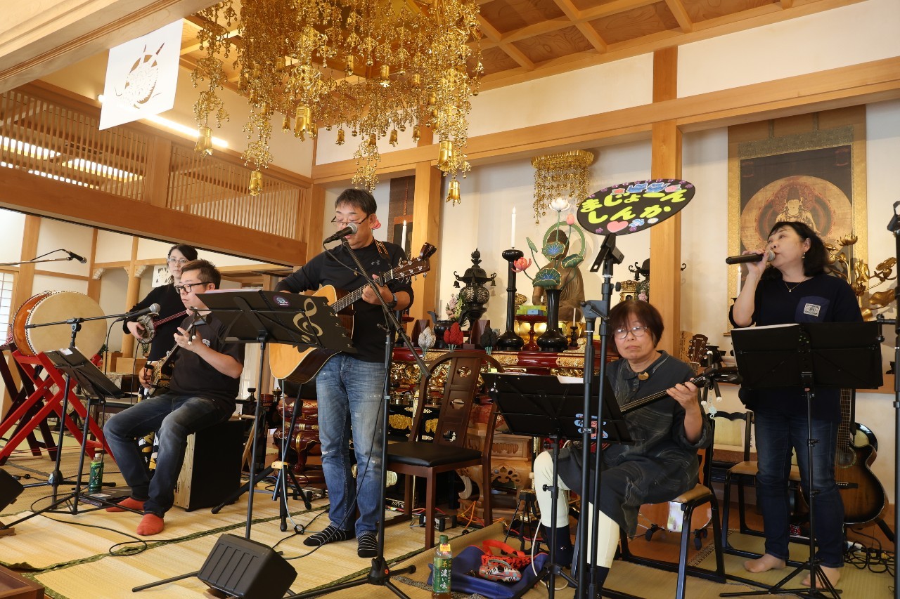 ウォークの後は赤岩寺の客殿でのライブ。豊橋界隈には優れた音楽活動をする方が多くいます。そんな皆さんの演奏をじっくり味わいます。これまでフォークソングやジャズなどのライブを行っています。